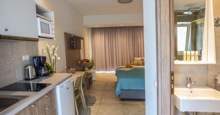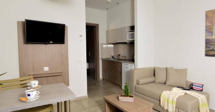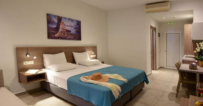 By staying at BLUE HORIZON you can explore the infinite beauties of Crete, get to know the warm hospitality of its people, taste the unique gastronomy of the place and discover the secrets that make the difference of "living" from "living".At the beach bar MAMBO you will find comfortable sun loungers and umbrellas, refreshing juices, soft drinks, drinks and pleasant music.The BLUE HORIZON BALI welcomes you with extremely spacious studios and apartments, perfectly clean, fully renovated, with modern, elegant decoration and all the facilities of modern hospitality, suitable for accommodating from 2 to 5 persons and offering them complete comfort, autonomy and homemade warmth.Pool and snack bar: Children and adults can safely enjoy diving, swimming, exercise and games in the crystal clear waters of the complex's beautiful swimming pool. You can also order a snack bar, coffees, soft drinks, juices or drinks throughout the day, as well as snacks such as toasts, sandwiches and salads.The gastronomy of the great island in all its grandeur is shown on your plate.Visit the traditional tavern "Psaropoula" and in its beautiful area enjoy delicious dishes of rich Cretan cuisine, cooked with great taste and excellent olive oil. Try unique delicacies with pure Cretan products, fresh fish and meats, selected cheeses, mussels, pies and sweets, plenty of fruits and cool vegetables. And all this, accompanied by fine wine and raki of the place.