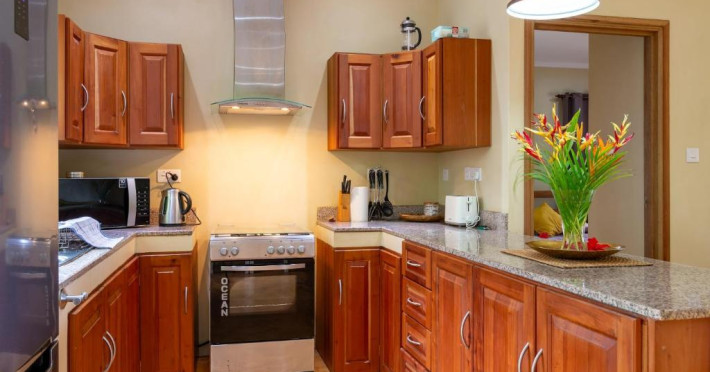 Blue Horizon Villas se află la 200 de metri de plaja Pointe au Sel si pune la dispoziție un lounge comun, o grădină si cazare cu aer conditionat, patio si acces gratuit la internet WiFi. Fiecare unitate de cazare are bucătărie cu frigider și cuptor cu microunde, seif, TV cu ecran plat și canale prin cablu, facilități de călcat, dulap și zonă de relaxare cu o canapea. Oaspeții au la dispoziție baie privată complet dotată, cu duș și uscător de păr. Această casă de vacanță pune la dispoziție grătar. Blue Horizon Villas furnizează un serviciu de inchiriere de mașini. Plaja Fairyland este situată la mai puțin de 1 km de unitatea de cazare, iar plaja Turtle Bay se află la 11 minute de mers pe jos.