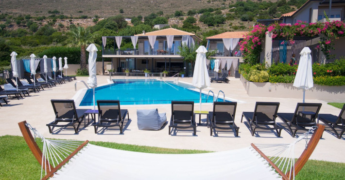 Sitting prettily on a peaceful promontory, the Blue Jasmine Hotel offers guests beautiful endless sea views of Southern Kefalonia from every angle, just a five-minute drive from the wide, sandy beaches of Skala.Blue Jasmine is a cozy family-run hotel with 12 colorfully designed suites, an expansive garden filled with flowers and a large swimming pool, conveying a mood of peace and relaxation.Sitting prettily on a peaceful promontory, the Blue Jasmine Hotel offers guests beautiful endless sea views of Southern Kefalonia from every angle, just a five-minute drive from the wide, sandy beaches of Skala.Blue Jasmine is a cozy family-run hotel with 12 colorfully designed suites, an expansive garden filled with flowers and a large swimming pool, conveying a mood of peace and relaxation.