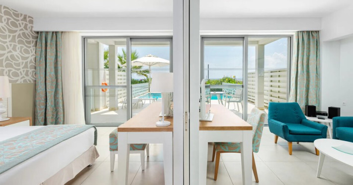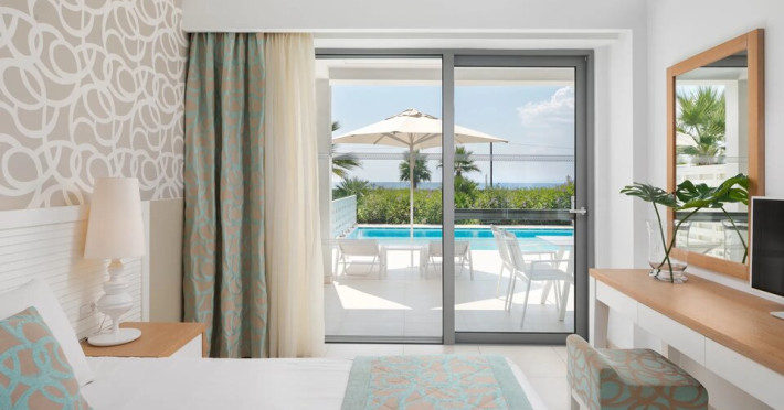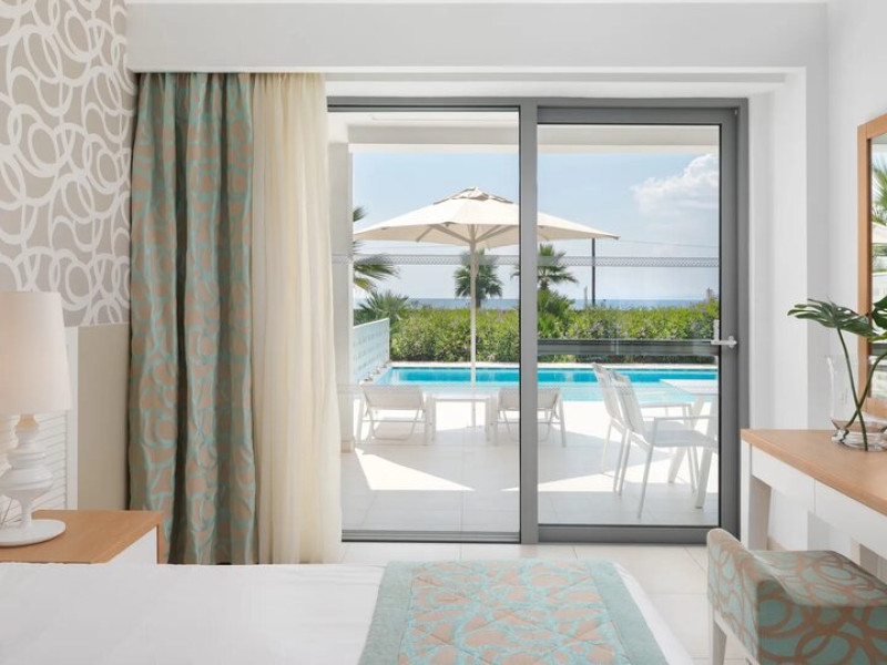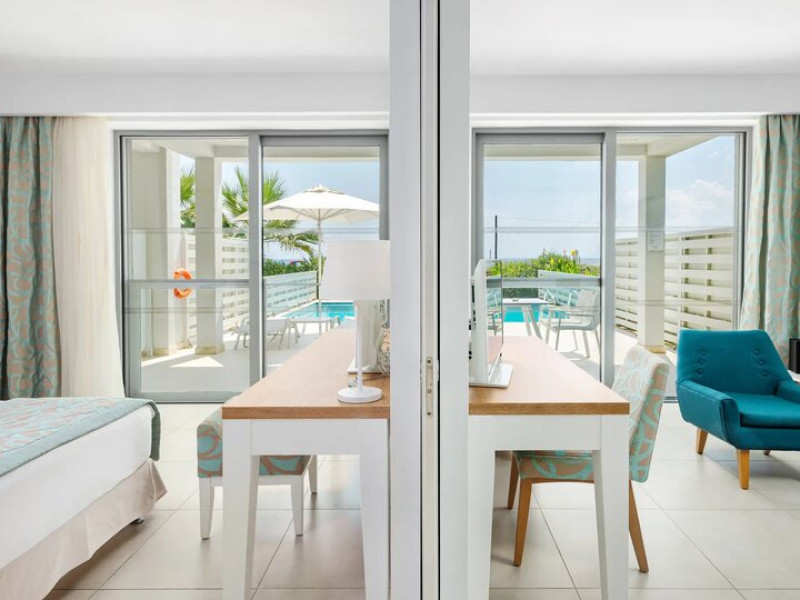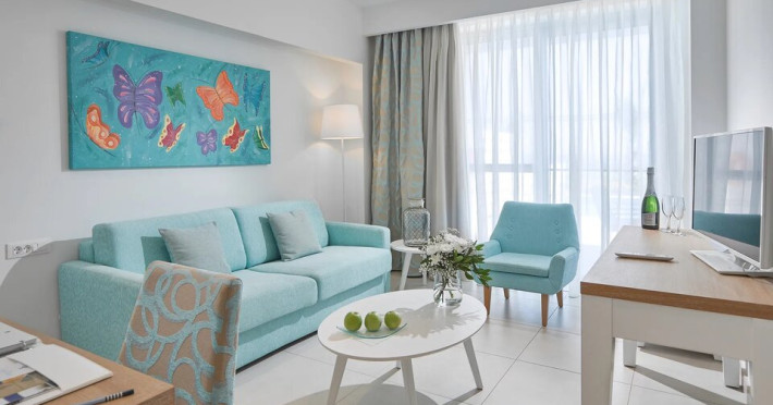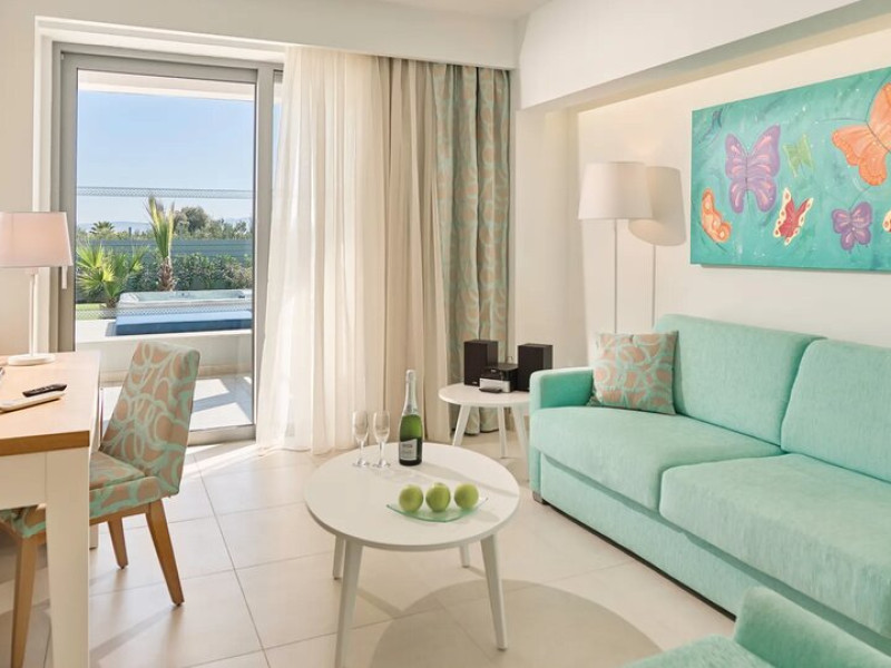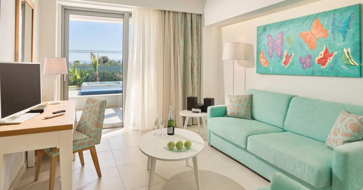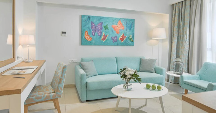 The Blue Lagoon Group is very proud to introduce the Blue Lagoon Queen! A brand new 5 star family hotel, which completes the family of Blue Lagoon Group Hotels in Halikidiki with its unique and modern presence.The location next to the sandy beach of Kalives, makes it an ideal destination for relaxation. Blue Lagoon Queen, with its brand new waterpark is here to make some joyful and unforgettable family moments with water games and slides. The rooms are luxurious, ranging from standard rooms to junior suites with sharing pool, Jacuzzi or private pools. Facilities in the rooms include free WiFi and a safe, tea and coffee facilities and bathrobe and slippers (on reques ROOMS: Family Room Sharing Pool 2-4 pax, max 3 adults Family Suite 2-4 pax, max 3 adults Junior Suite 2-4 pax, max 3 adults Junior Suite Jacuzzi 2-4 pax, max 3 adults Junior Suite Sharing Pool 2-4 pax, max 3 adults Standard Room 2-3 pax, max 3 adults Standard Room Pool View 2-3 pax, max 3 adults Standard Room Pool View – Jacuzzi 2-3 pax, max 3 adults Standard Room Sharing Pool 2-3 pax, max 3 adults Suite Sharing Pool 2-5 pax, max 3 adults