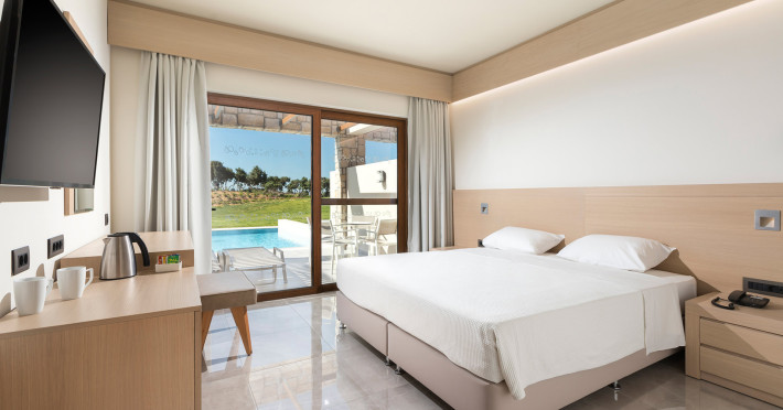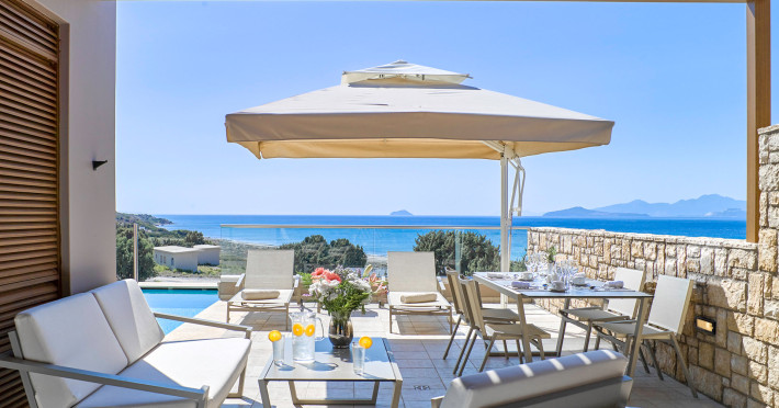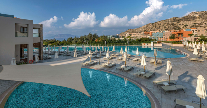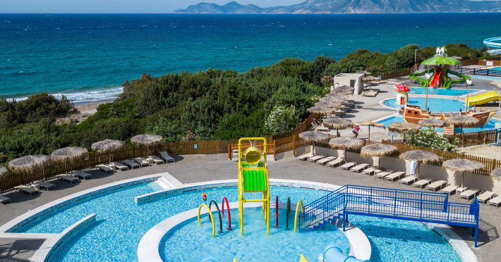Blue Lagoon Village este un complex luxos in stil sat, cu 447 de camere. Acest hotel all inclusive este in contact direct cu plaja de nisip, oferind vederi magnifice. Este situat la doar 10 km de centrul orasului Kefalos, langa Paradise Beach una dintre cele mai frumoase plaje din Kos, la doar 7 km de aeroport si la 30 km de orasul Kos, capitala insulei.