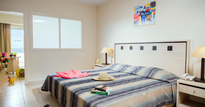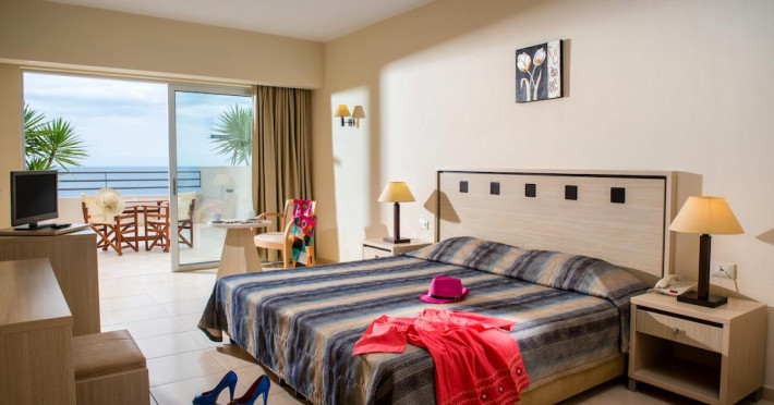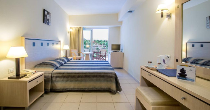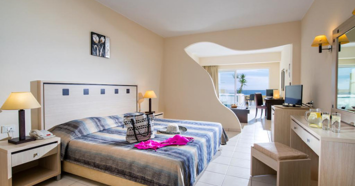 Sunt disponibile 202 camere. Fiecare cameră dispune de un aparat pentru preparare cafea sau ceai, cană-fierbător și minibar. Oaspeții pot solicita serviciul de room service pentru a servi masa sau diverse băuturi. În camere există baie cu cadă sau duș ce are în dotare foehn și articole de toaletă gratuite. Unele camere au balcon cu vedere la mare, unde oaspeții pot admira apusul sau răsăritul soarelui. Camerele confortabile de la Blue Marine Resort & Spa au pardoseală de gresie/ marmură, aer condiționat, Tv cu canale prin satelit și seif. Oaspeții au acces gratuit la serviciul Wi-fi în camere. Curățenia in cameră se face zilnic. Toate camerele spațioase de la Blue Marine Resort & Spa au zonă de relaxare cu canapea, ceea ce oferă un plus de confort. Proprietatea oferă camere pentru familie cu o suprafață mai mare și un număr mai mare de paturi față de cele standard.
