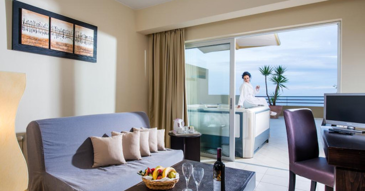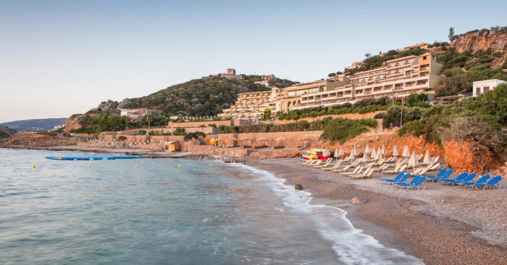 Blue Marine Resort & Spa are acces imediat la o plajă cu nisip și pietriș. Pe plajă există șezlonguri și umbrele de plajă.
