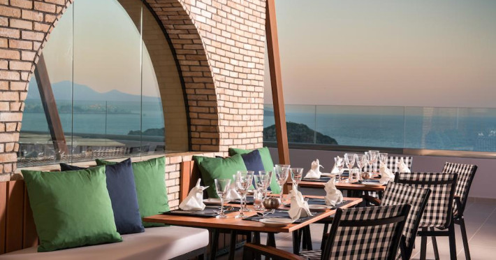 La Blue Marine Resort & Spa oaspeții au la dispoziție 4 restaurante unde pot savura mâncăruri delicioase, în stil bufet sau à la carte. Preparate din bucătăria internațională, mediteraneeană și italiană propun mâncăruri pentru gusturi diverse.. Masa poate fi servită atât în interior, cît si în aer liber, pe terasă, în funcție de vreme. 4 baruri, dintre care unul la piscină, sunt disponibile cu o ofertă variată de băuturi răcoritoare și alcoolice. Pentru cei cu anumite nevoi de nutriție, Blue Marine Resort & Spa oferă meniuri pentru diete speciale.