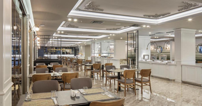 Hotelul oferă o gamă completă de facilități pentru turiști, inclusiv recepție deschisă non-stop, restaurant principal, piscină în aer liber, piscină interioară, piscină pentru copii, două tobogane, restaurant a la carte, prosoape de plajă, centru de fitness, facilități SPA, saună, baie turcească, internet WiFi, programe de animație, parcare și transfer de la și/sau la aeroport (privat, disponibil contra cost).