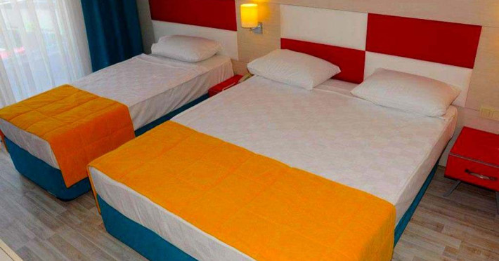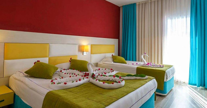 Sunt disponibile 260 camere. În camere există baie cu duș prevăzută cu foehn. Oaspeții au la dispoziție serviciul de room service pentru a servi masa sau diverse băuturi. Camerele au balcon cu masă și scaune unde pot fi petrecute momente de relaxare. Camerele luminoase de la Blue Paradise Side sunt dotate cu parchet, aer condiționat, Tv și seif. Oaspeții au acces la serviciul Wi-fi în camere contra cost. Curățenia in cameră se face zilnic.