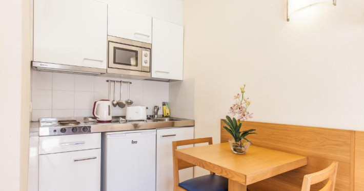 Camerele sunt amenajate cu o zonă de living, o bucătărie și o baie, de asemenea, un aparat de aer condiționat și un sistem de încălzire contribuie la o atmosferă agreabilă. În majoritatea camerelor se găsește câte un balcon. Camerele dispun de un pat dublu și de o canapea. Sunt disponibile dormitoare separate. În plus, pentru cei mici sunt disponibile paturi pentru copii. Lucrurile de valoare pot fi păstrate în siguranță într-un seif. Datorită unui frigider, unui aragaz, unui cuptor cu microunde și unui aparat pentru cafea/ceai, chicineta este bine echipată pentru cei ce se aprovizionează singuri. Un telefon cu apelare directă, un televizor cu canale prin satelit/cablu TV și WiFi-ul (contra cost) oferă un concediu confortabil. În baia dotată cu un duș și o cadă există un uscător de păr.