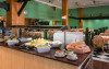 Restaurantul servește bufet cu gătit live, iar gustările sunt disponibile pe tot parcursul zilei. Programul de divertisment al hotelului include muzică live și seri de jocuri.