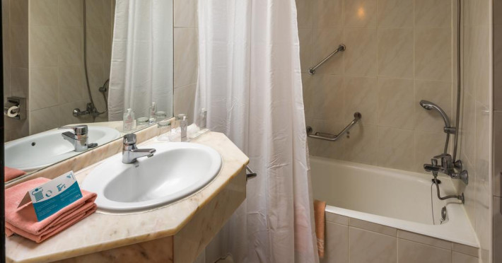 În camere există baie cu cadă sau duș prevăzută cu foehn. Camerele luminoase de la Blue Sea Costa Jardin & Spa sunt dotate cu aer condiționat, Tv și seif. Oaspeții au acces gratuit la serviciul Wi-fi în camere. Curățenia in cameră se face zilnic. Proprietatea oferă camere pentru familie cu o suprafață mai mare și un număr mai mare de paturi față de cele standard. Se pot rezerva de asemenea camere pentru nefumători.