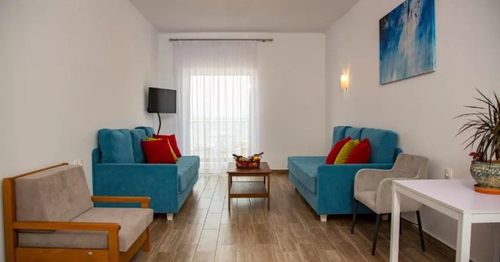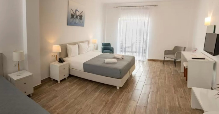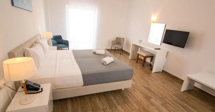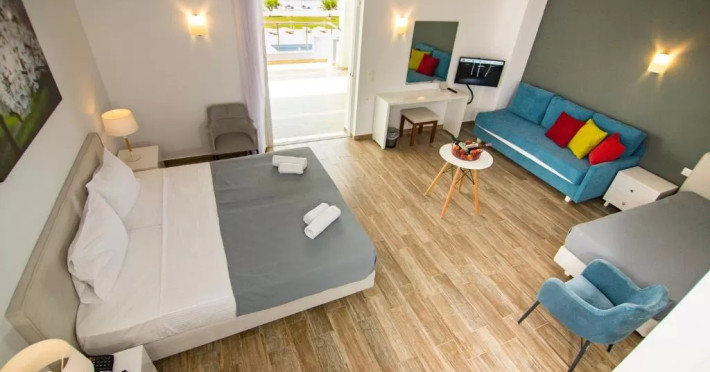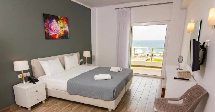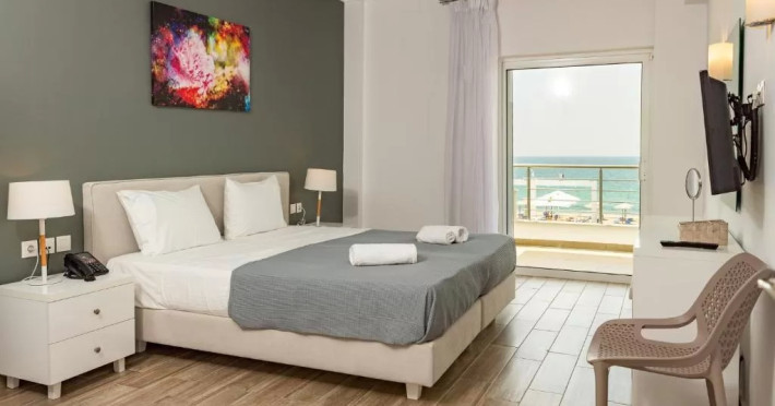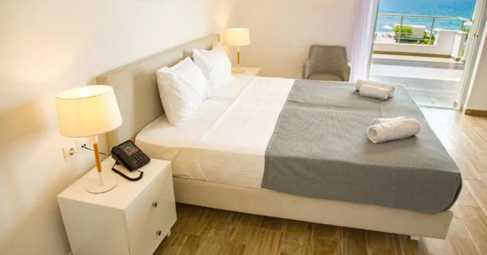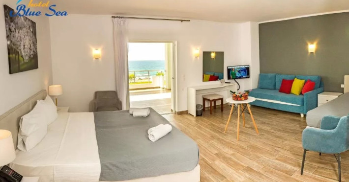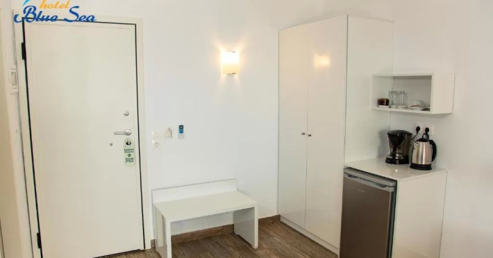 Sunt disponibile 11 camere. Camerele luminoase de la Blue Sea Hotel sunt dotate cu aer condiționat, Tv și seif. Fiecare cameră dispune de un aparat pentru preparare cafea sau ceai. Oaspeții pot solicita serviciul de room service pentru a servi masa sau diverse băuturi. În camere există baie cu cadă sau duș prevăzută cu foehn. Unele camere au balcon cu vedere la mare sau la piscină. Curățenia in cameră se face zilnic. Fiecare unitate de cazare are frigider. Proprietatea oferă camere pentru familie cu o suprafață mai mare și un număr mai mare de paturi față de cele standard.