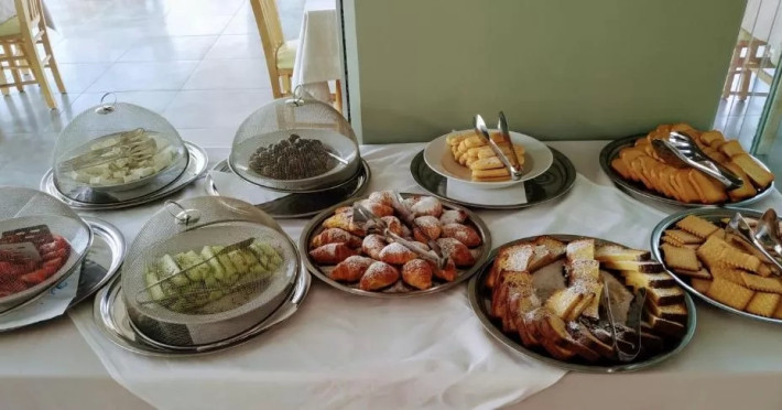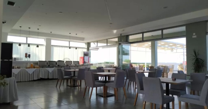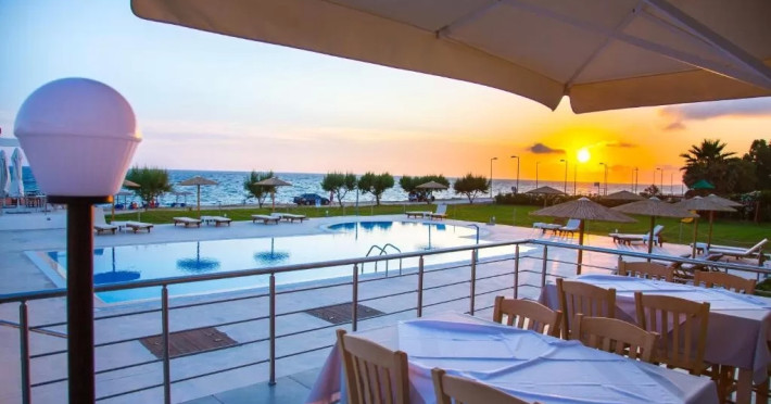 La Blue Sea Hotel oaspeții au la dispoziție un restaurant care servește mâncare à la carte. Preparate din bucătăria grecească așteaptă să fie degustate în fiecare zi. Masa poate fi servită atât în interior, cît si în aer liber, pe terasă, în funcție de vreme. Blue Sea Hotel servește zilnic un mic dejun tip bufet în zona de luat masa. Oaspeţii pot avea diverse băuturi răcoritoare sau alcoolice la bar. În cadrul proprietății există și un snack bar care servește băuturi și gustări.