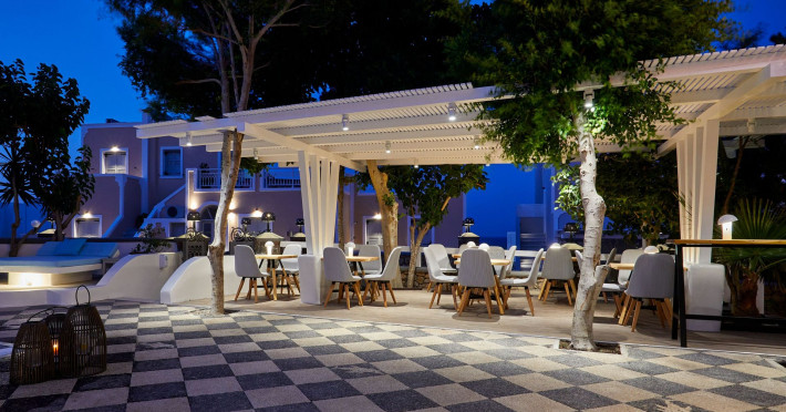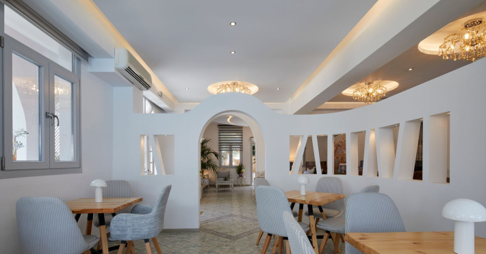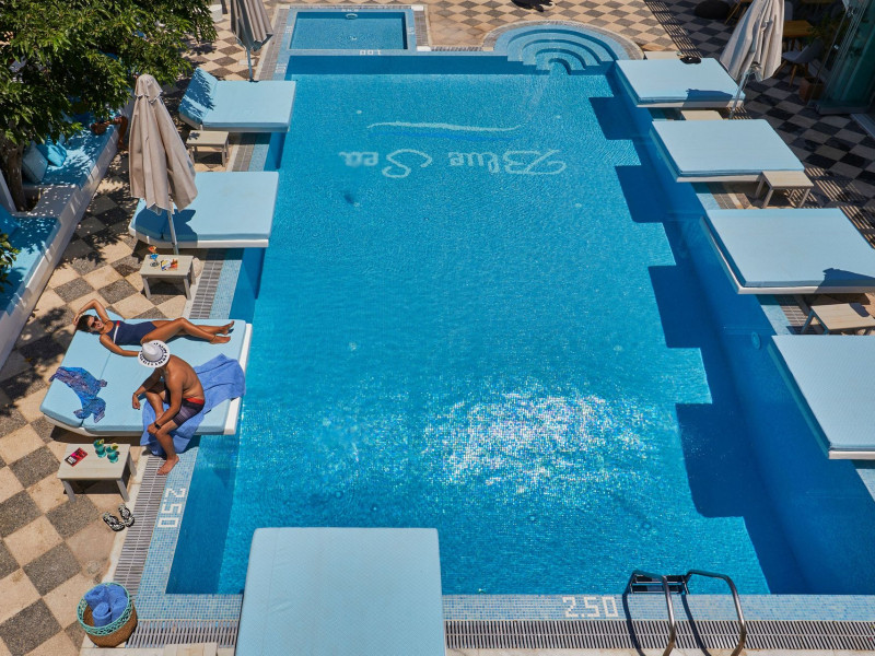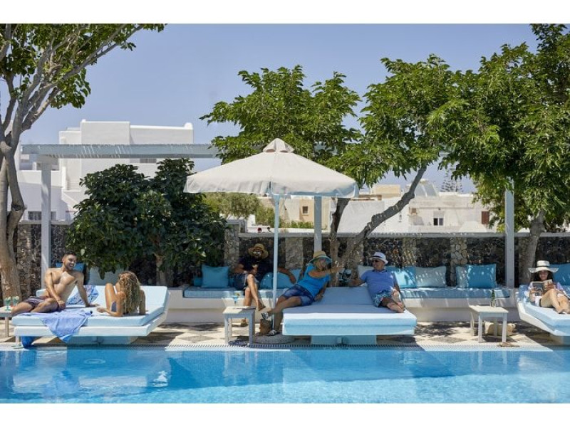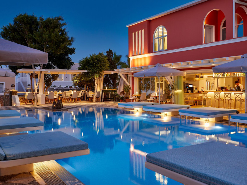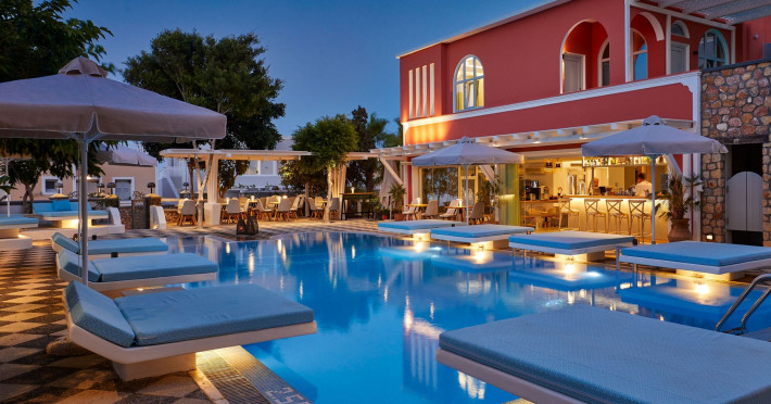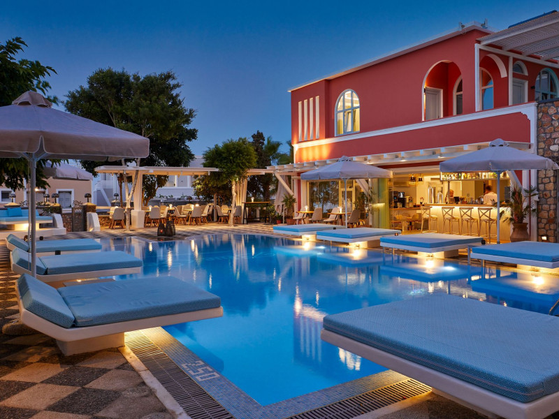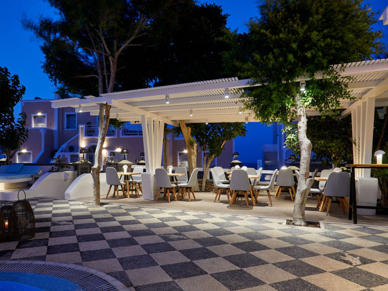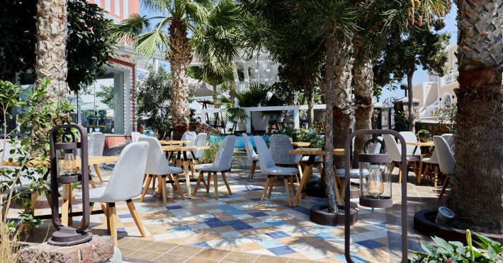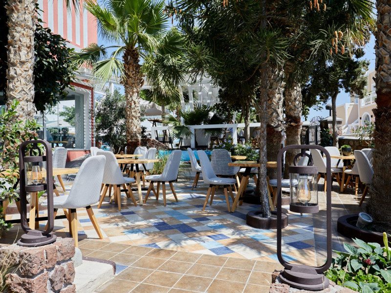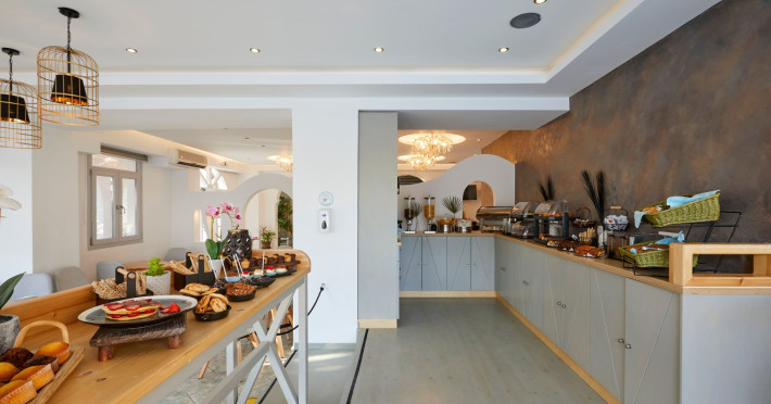 Graciously located in the southeastern coast of Santorini, Blue Sea Hotel is a haven of relaxation, steeped in the cozy atmosphere of its magnificent setting. Just a stone’s throw from the superb Kamari beach, our sanctuary for families and newlyweds encompasses the waterfront's charm. Unwind in a profound stay experience at our pool area. In an inspiring environment, three swimming pools are crowned by our garden's lush greenery. Delicious snacks and refreshing drinks are served all day long, to capture the real essence of summer. The comfortable sunbeds become the perfect refuge to indulge in our tranquil ambiance with one of our signature cocktails in hand, while our continental breakfast is served to perfection to kick-start your day.Destined to be forged by the fierce volcanic powers, Kamari beach idyllic stretches of sand showcase intriguing black hues. Being one of the most famous beaches on the island, at Kamari you ‘ll find convenient amenities, sunbeds and umbrellas to immerse yourself into a whimsical spree. The water-sports enthusiasts will entertain themselves with fun-packed activities, such as jet skiing and windsurfing.Conveniently situated close to the island’s main points of interest, Blue Sea Hotel sits in a privileged location. Mythical mountain views and the ever-romantic sea constitute the perfect backdrop to delve into Santorini’s living. Nearby lie the spectacular ruins of ancient Thira, the quaint church of Agios Nikolaos and the stunning natural spring Zoodochos Pigi (Life-giving Spring).BREAKFAST:Meet our delicious morning ways, served in our signature friendly ambiance. Our breakfast room exudes coziness while you enjoy our mouthwatering continental breakfast. A fantastic cornucopia unfolds before your eyes to kick-off a morning full of energy.Wake up to the smell of our scented coffees. Treat yourself to our savory and sweet breakfast options with baked goods and pastries. Our recommendation? Top your bowl of Greek yogurt with seasonal fruits to indulge in our healthy habits. Upon request, we serve the first meal of the day, at the privacy of your doorstep.Graciously located in the southeastern coast of Santorini, Blue Sea Hotel is a haven of relaxation, steeped in the cozy atmosphere of its magnificent setting. Just a stone’s throw from the superb Kamari beach, our sanctuary for families and newlyweds encompasses the waterfront's charm. Unwind in a profound stay experience at our pool area. In an inspiring environment, three swimming pools are crowned by our garden's lush greenery. Delicious snacks and refreshing drinks are served all day long, to capture the real essence of summer. The comfortable sunbeds become the perfect refuge to indulge in our tranquil ambiance with one of our signature cocktails in hand, while our continental breakfast is served to perfection to kick-start your day.Destined to be forged by the fierce volcanic powers, Kamari beach idyllic stretches of sand showcase intriguing black hues. Being one of the most famous beaches on the island, at Kamari you ‘ll find convenient amenities, sunbeds and umbrellas to immerse yourself into a whimsical spree. The water-sports enthusiasts will entertain themselves with fun-packed activities, such as jet skiing and windsurfing.Conveniently situated close to the island’s main points of interest, Blue Sea Hotel sits in a privileged location. Mythical mountain views and the ever-romantic sea constitute the perfect backdrop to delve into Santorini’s living. Nearby lie the spectacular ruins of ancient Thira, the quaint church of Agios Nikolaos and the stunning natural spring Zoodochos Pigi (Life-giving Spring).BREAKFAST:Meet our delicious morning ways, served in our signature friendly ambiance. Our breakfast room exudes coziness while you enjoy our mouthwatering continental breakfast. A fantastic cornucopia unfolds before your eyes to kick-off a morning full of energy.Wake up to the smell of our scented coffees. Treat yourself to our savory and sweet breakfast options with baked goods and pastries. Our recommendation? Top your bowl of Greek yogurt with seasonal fruits to indulge in our healthy habits. Upon request, we serve the first meal of the day, at the privacy of your doorstep.