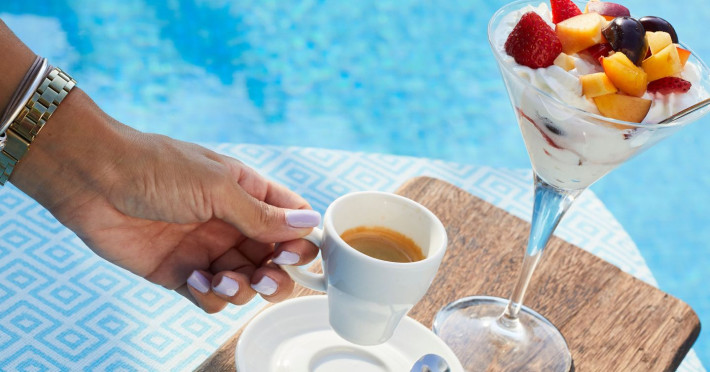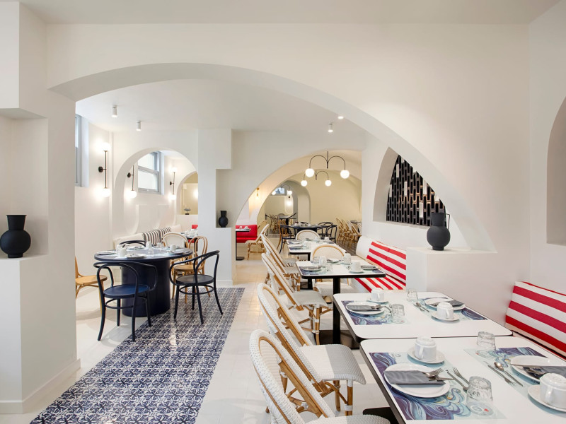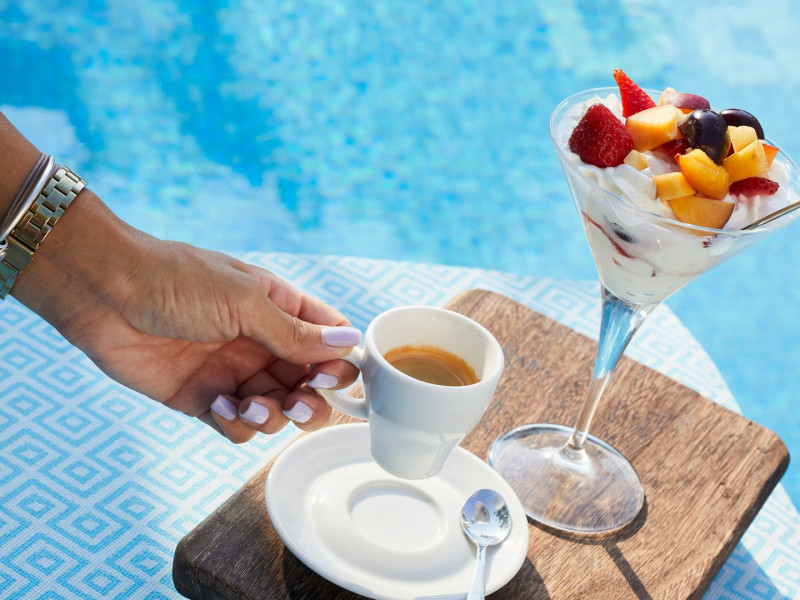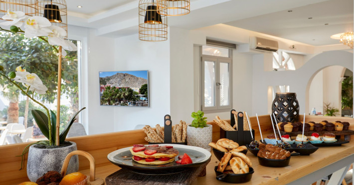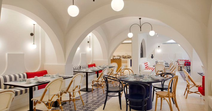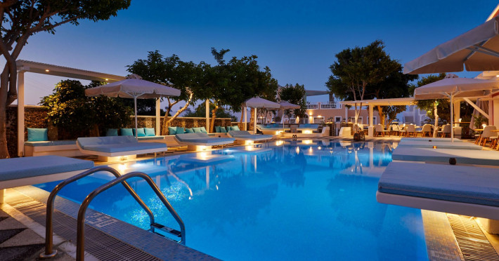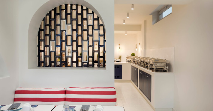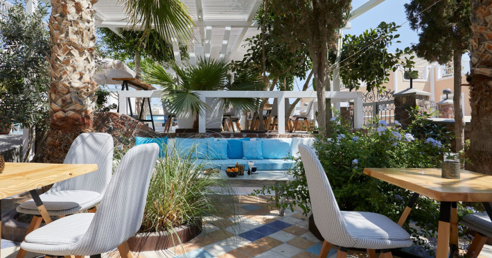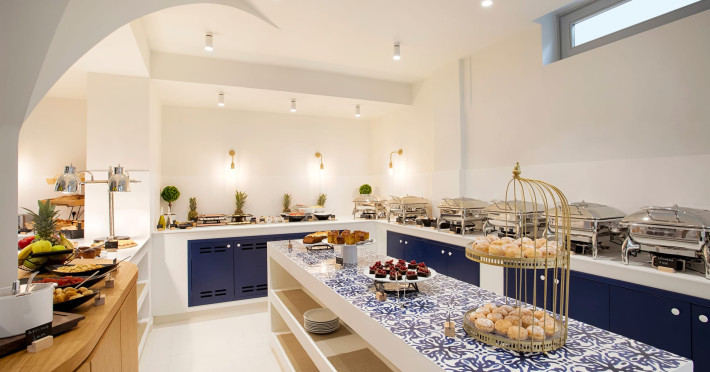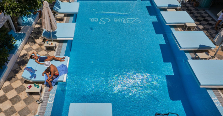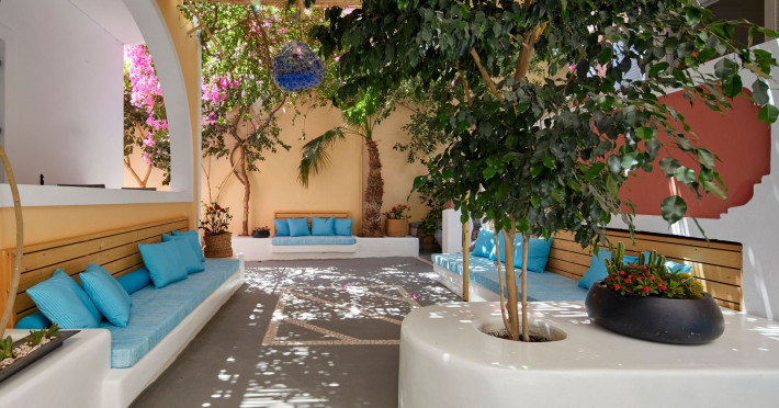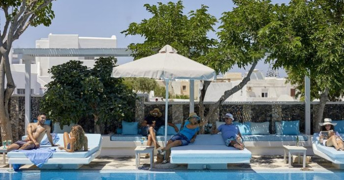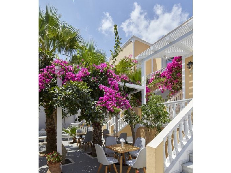 Graciously located in the southeastern coast of Santorini, Blue Sea Hotel is a haven of relaxation, steeped in the cozy atmosphere of its magnificent setting. Just a stone’s throw from the superb Kamari beach, our sanctuary for families and newlyweds encompasses the waterfront's charm. Unwind in a profound stay experience at our pool area. In an inspiring environment, three swimming pools are crowned by our garden's lush greenery. Delicious snacks and refreshing drinks are served all day long, to capture the real essence of summer. The comfortable sunbeds become the perfect refuge to indulge in our tranquil ambiance with one of our signature cocktails in hand, while our continental breakfast is served to perfection to kick-start your day.Destined to be forged by the fierce volcanic powers, Kamari beach idyllic stretches of sand showcase intriguing black hues. Being one of the most famous beaches on the island, at Kamari you ‘ll find convenient amenities, sunbeds and umbrellas to immerse yourself into a whimsical spree. The water-sports enthusiasts will entertain themselves with fun-packed activities, such as jet skiing and windsurfing.Conveniently situated close to the island’s main points of interest, Blue Sea Hotel sits in a privileged location. Mythical mountain views and the ever-romantic sea constitute the perfect backdrop to delve into Santorini’s living. Nearby lie the spectacular ruins of ancient Thira, the quaint church of Agios Nikolaos and the stunning natural spring Zoodochos Pigi (Life-giving Spring).BREAKFAST:Meet our delicious morning ways, served in our signature friendly ambiance. Our breakfast room exudes coziness while you enjoy our mouthwatering continental breakfast. A fantastic cornucopia unfolds before your eyes to kick-off a morning full of energy.Wake up to the smell of our scented coffees. Treat yourself to our savory and sweet breakfast options with baked goods and pastries. Our recommendation? Top your bowl of Greek yogurt with seasonal fruits to indulge in our healthy habits. Upon request, we serve the first meal of the day, at the privacy of your doorstep.Graciously located in the southeastern coast of Santorini, Blue Sea Hotel is a haven of relaxation, steeped in the cozy atmosphere of its magnificent setting. Just a stone’s throw from the superb Kamari beach, our sanctuary for families and newlyweds encompasses the waterfront's charm. Unwind in a profound stay experience at our pool area. In an inspiring environment, three swimming pools are crowned by our garden's lush greenery. Delicious snacks and refreshing drinks are served all day long, to capture the real essence of summer. The comfortable sunbeds become the perfect refuge to indulge in our tranquil ambiance with one of our signature cocktails in hand, while our continental breakfast is served to perfection to kick-start your day.Destined to be forged by the fierce volcanic powers, Kamari beach idyllic stretches of sand showcase intriguing black hues. Being one of the most famous beaches on the island, at Kamari you ‘ll find convenient amenities, sunbeds and umbrellas to immerse yourself into a whimsical spree. The water-sports enthusiasts will entertain themselves with fun-packed activities, such as jet skiing and windsurfing.Conveniently situated close to the island’s main points of interest, Blue Sea Hotel sits in a privileged location. Mythical mountain views and the ever-romantic sea constitute the perfect backdrop to delve into Santorini’s living. Nearby lie the spectacular ruins of ancient Thira, the quaint church of Agios Nikolaos and the stunning natural spring Zoodochos Pigi (Life-giving Spring).BREAKFAST:Meet our delicious morning ways, served in our signature friendly ambiance. Our breakfast room exudes coziness while you enjoy our mouthwatering continental breakfast. A fantastic cornucopia unfolds before your eyes to kick-off a morning full of energy.Wake up to the smell of our scented coffees. Treat yourself to our savory and sweet breakfast options with baked goods and pastries. Our recommendation? Top your bowl of Greek yogurt with seasonal fruits to indulge in our healthy habits. Upon request, we serve the first meal of the day, at the privacy of your doorstep.