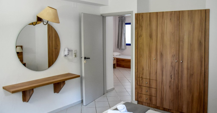 Dotari camere: Toate camerele ( dubla & family- land view/ partial sea view) au baie, uscator de par, loc de luat masa, tlevizor, frigider,