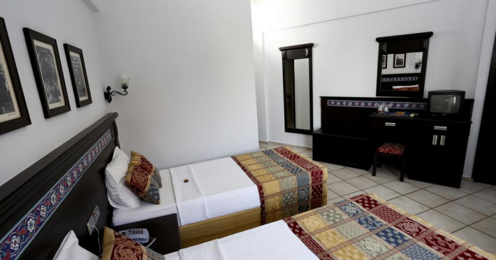Fiecare cameră dispune de minibar și cană pentru preparare apă caldă. În camere există baie cu cadă sau duș ce are în dotare foehn și articole de toaletă gratuite. Unele camere au balcon cu vedere la mare sau la piscină. Camerele confortabile de la Blue Sky Hotel Alanya au pardoseală de gresie/ marmură, aer condiționat, Tv cu canale prin satelit și seif. Oaspeții au acces gratuit la serviciul Wi-fi în camere. Curățenia in cameră se face zilnic. Fiecare unitate de cazare are frigider. Proprietatea oferă camere pentru familie cu o suprafață mai mare și un număr mai mare de paturi față de cele standard. Se pot rezerva de asemenea camere pentru nefumători.