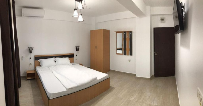 Camera dubla - aprox. 20 mp cu pat matrimonial de 160/200 cu toate dotarile incluse: Tv , baie propie, internet wireless, aer conditionat, frigider.Camera dubla fara vedere, are balcon, dar in fata lor este o alta cladire.