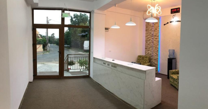 Hotelul Blue Sky 3* este pozitionat la numai 5 minute distanta fata de plaja, in zona Steaua de Mare. Hotelul dispune de 25 camere duble, 12 camere triple, parcare in limita locurilor disponibile, internet Wireless.Camera dubla aprox.20 mp cu pat mare matrimonial de 160/200 cu toate dotarile incluse: Tv Lcd, baie propie, internet wireless, AC, frigider.