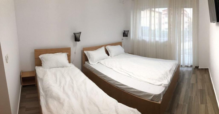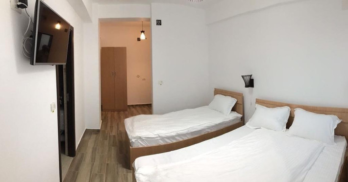 Camera tripla este mai spatioase de circa 25 de metri patrati, cu un pat matrimonial de 160/200 plus un pat de o persoana cu toate dotarile incluse: Tv Lcd, baie propie , internet wireless, aer conditionat , frigider.