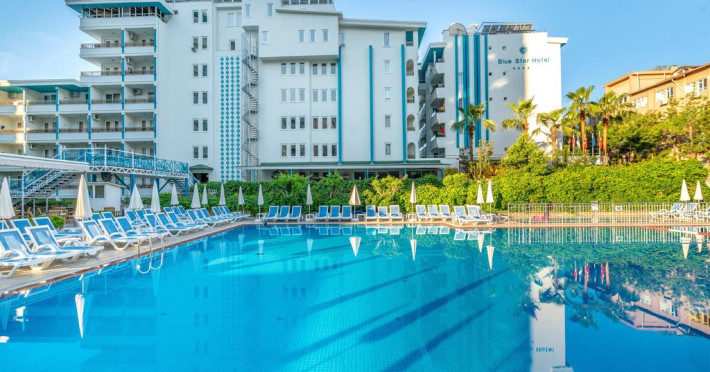 Situată în Alanya (Antalya), Blue Star se află la 650 m de plaja Kleopatra și oferă unități de cazare cu aer condiționat, grădină și terasă în aer liber. Facilitățile de la Blue Star includ și sală de fitness. Proprietatea are, de asemenea, servicii de recepție cu program non - stop și închirieri auto. Se oferă acces gratuit la internet Wi-fi în spațiile publice. Parcarea este posibilă pe stradă, în imediata apropiere a proprietății.
