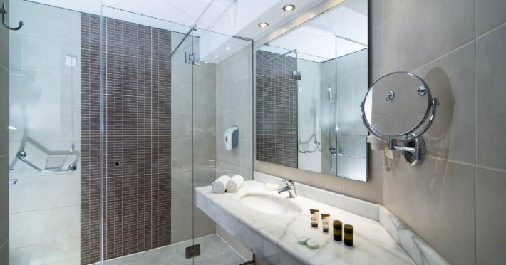 Dotari camere: Toate tipurile de camera ( dubla cu vedere laterala la piscina, dubla cu vedere la piscina, dubla cu vedere partiala la mare si suita cu vedere la mare) sunt dotate cu baie cu dus, uscator de par, aer conditionat, frigider, televizor, telefon, prosoape, oglinda make-up,