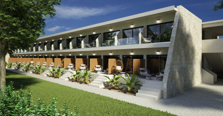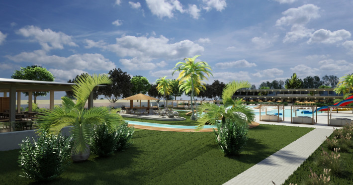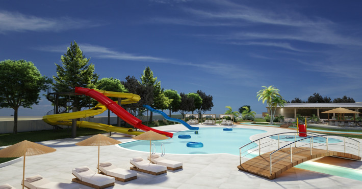 This new built accommodation is located in Western Greece, in the village of Kastrosikia, only 18 km from the center of Preveza and close to the city of Parga.It is built 500 meters from the Ionian Sea with the longest coastline in the Mediterranean.Designed to welcome you and your family in, comfort and style it offers 2 connected swimming pools with water slides with sunbeds and umbrellas for unique moments of relaxation under the greek sun. All guests can also use the ping pong tables, tennis court, basketball court, kids club from Ninos Grand Beach and Resort. There is also a restaraunt for the AI boarding and a pool bar.