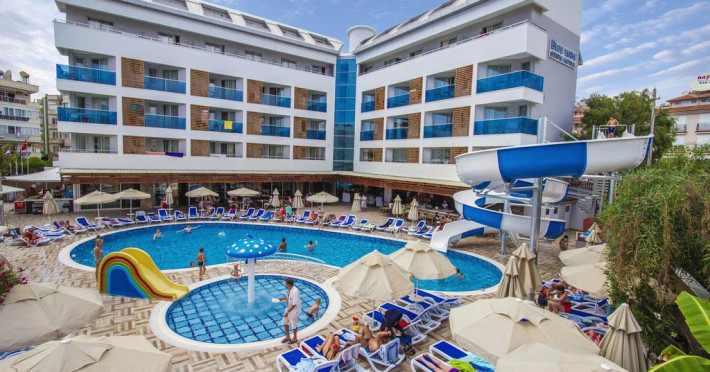 Hotelul este ideal pentru familii, este format din 5 blocuri. Oaspetii hotelului se pot relaxa complet intr-o atmosfera prietenoasa si gasesc divertisment dupa bunul plac. Blue Wave Hotel serveste in regim all inclusive. Turistii au la dispozitie o serie de facilitati si diverse activitati in cadrul hotelului.Facilitati camere