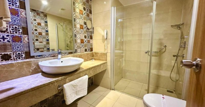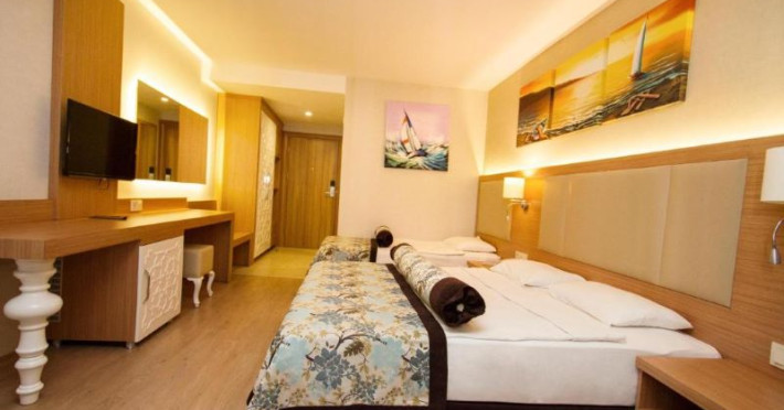 Blue Wave este un hotel de 4 stele, cunoscut pentru facilitățile și serviciile sale de calitate. Este ideal pentru toate categoriile de vârstă, dar în special pentru familiile cu copii, datorită gamelor variate de activități și facilități adaptate nevoilor acestora. Situat în inima orașului, hotelul oferă oportunități excelente pentru explorarea atracțiilor locale și pentru accesul ușor la restaurante, magazine și alte puncte de interes din zonă. Oaspeții care apreciază o atmosferă vibrantă și animată vor găsi Blue Wave alegerea perfectă pentru o vacanță relaxantă și plină de aventură în Alanya.Descriere