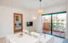 Fiecare apartament cu aer condiționat are o zonă de lounge cu canapea și televizor, o baie privată și o chicinetă cu cuptor cu microunde și plită. Există, de asemenea, o terasă privată sau un balcon cu vedere la complex sau la insulă.