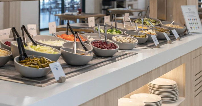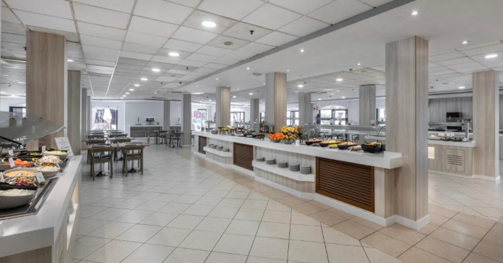 Puteți lua micul dejun, pranzul și cina la restaurantul tip bufet al Aloe Club. Există, de asemenea, un bar la piscină care servește băuturi și gustări. Alte facilități includ o sală de sport și facilități de tenis de masă.