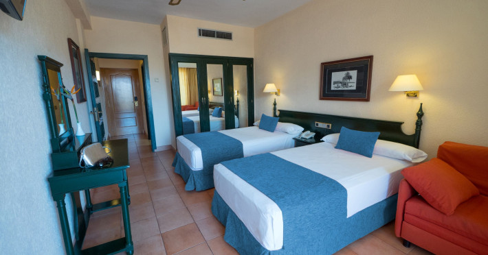 About 2,5 km from a beach is located the hotel BLUESEA Costa Jardin & Spa. The nearest bars and restaurants can be found at a distance of around 500 m. The city centre is around 2,5 km away. The nearest shops you can reach within around 500 m. The hotel is equipped with a 24h reception, Wi-Fi, internet access, 2 lifts, a shop as well as a TV lounge. In the outdoor area of the property you will find a garden as well as a pool that is open seasonally, where you can rent pool towels for a fee and sun loungers and sun umbrellas are available for free. For the young hotel guests there is a playground. You can store your luggage in the hotel's storage room. There is also a laundry service. If necessary, you can contact the medical centre (for a fee). For conventions and other business meetings, the hotel offers a conference area. If you want to explore the holiday region, you can use the car rental service close to the hotel. At the reception, tickets are offered for excursions in the area. Euro/Master Card is accepted as means of payment. Catering As catering services the hotel offers all-inclusive. Breakfast is offered from the buffet. Lunch and dinner are also served from the buffet. Your physical well-being is catered for by the pool bar. Distances