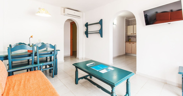 In the vicinity of the sandy beach and approx. 300 m from the sea lies the apart hotel Es Bolero. The air-conditioned hotel has a 24h reception, Wi-Fi, a lift, parking spaces as well as a TV lounge. In the outdoor area of the property you will find a garden as well as a seasonally open, heated pool, where sun loungers and sun umbrellas are available for free. There is also a children's pool. Your valuables can be stored in the hotel safe. For your entertainment, the hotel offers a disco. To clean your clothes there is a laundry service. If necessary, you can contact the medical centre. For conventions and other business meetings, the hotel offers a conference area. Due to its barrier-free facilities , such as barrier-free entrances, the hotel is also suitable for wheelchair users. Catering As catering services the hotel offers all-inclusive. Breakfast is offered from the buffet. Lunch and dinner are also served from the buffet. For the meals, there are a buffet restaurant (Italian dishes) and the cafeteria as well as the pool bar. Sports & Leisure At the hotel grounds, a gym awaits your visit. If you want to stay on the ball during your holidays, you`ll find the chance to play basketball. A tennis court (hard court) can also be used by hotel guests. Junior hotel guests can let off steam in the mini disco. For the entertainment of adults shows are organized in the evening. The hotel also offers a games room for adults.In the vicinity of the sandy beach and approx. 300 m from the sea lies the apart hotel Es Bolero. The air-conditioned hotel has a 24h reception, Wi-Fi, a lift, parking spaces as well as a TV lounge. In the outdoor area of the property you will find a garden as well as a seasonally open, heated pool, where sun loungers and sun umbrellas are available for free. There is also a children's pool. Your valuables can be stored in the hotel safe. For your entertainment, the hotel offers a disco. To clean your clothes there is a laundry service. If necessary, you can contact the medical centre. For conventions and other business meetings, the hotel offers a conference area. Due to its barrier-free facilities , such as barrier-free entrances, the hotel is also suitable for wheelchair users. Catering As catering services the hotel offers all-inclusive. Breakfast is offered from the buffet. Lunch and dinner are also served from the buffet. For the meals, there are a buffet restaurant (Italian dishes) and the cafeteria as well as the pool bar. Sports & Leisure At the hotel grounds, a gym awaits your visit. If you want to stay on the ball during your holidays, you`ll find the chance to play basketball. A tennis court (hard court) can also be used by hotel guests. Junior hotel guests can let off steam in the mini disco. For the entertainment of adults shows are organized in the evening. The hotel also offers a games room for adults.