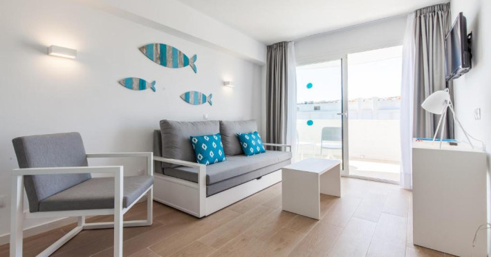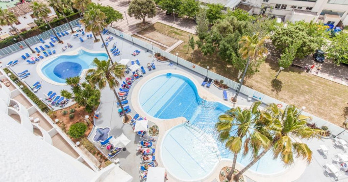 BLUESEA Gran Playa are 3 piscine in aer liber, inconjurate de terase si grădini. Acesta este situat pe plaja Sa Coma din Majorca.