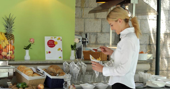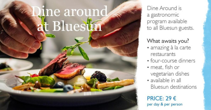 Serviciul all inclusive cuprinde 3 mese principale, 2 gustări si diverse băuturi. De asemenea, serviciul include biciclete gratuite si alte activități, printre care tenis, fotbal, tenis de masă si volei. Oaspeții pot utiliza oferta Dine Around at Bluesun, care cuprinde o cină a la carte cu 4 feluri de mancare, cu pește, carne sau vegetariană la restaurantele partenere din Brela, Tucepi, Bol, Supetar și Starigrad-Paklenica. Toate restaurantele servesc mancăruri preparate cu ingrediente locale proaspete, ulei de măsline local si vin Stina.