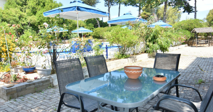 "BlueWhite Apartments" is a 2 Key accommodation located within Kerameies Village. It is situated in close proximity to the amazing beaches "Agios Thomas" & "Trapezaki" and it is surrounded by beautiful lush green areas. "Agios Thomas" & "Trapezaki" beaches are two of the most popular on the island, taking only 10 minutes to drive from the hotel, and are fully organized having available to its visitors sun beds & umbrellas as well beach bar services.