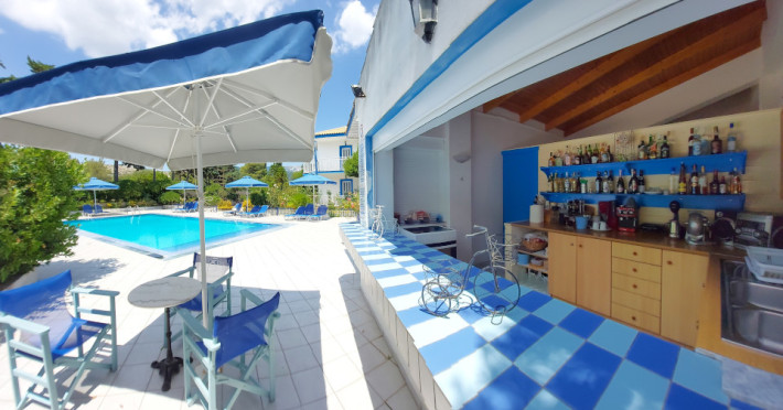All units at BlueWhite Apartments are equipped according to the current standards. The main features of each unit includes: a kitchenette, a mini fridge, kettle, a toaster, TV, a safety deposit box, a bathroom with shower, a hairdryer and A/C. All units have either a balcony or a veranda, offering views of the pool, the village or the accommodation's charming little garden.