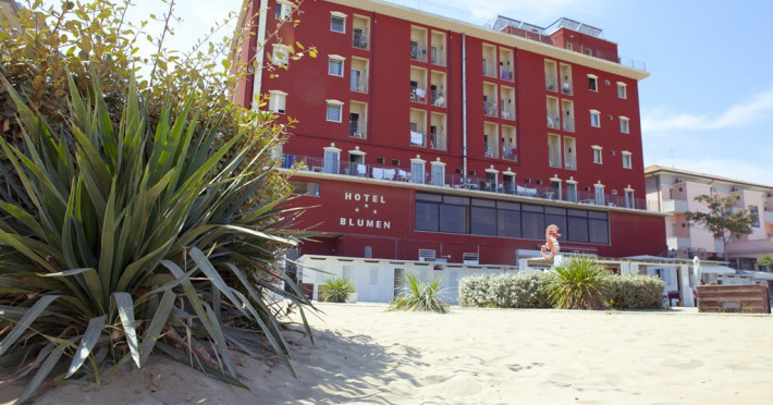 HOTEL BLUMEN3* Viserba di RiminiDescriere:Hotel Blumen este pe plaja si este recomandat familiilor cu copii.Gara din Viserba, cu legaturi catre Rimini, Riccione ei Cesenatico, este la doar 800 de metri de hotel.