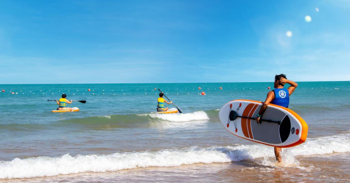 Activitățile sportive sunt o altă opțiune de petrecere a timpului liber. O sală de fitness cu echipamente necesare pentru o gamă variată de exerciții fizice este la dispoziția celor interesați. În imediata apropiere se pot practica sporturi nautice, precum windsurfing, caiac sau schi nautic.