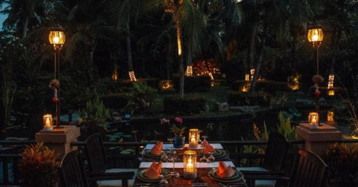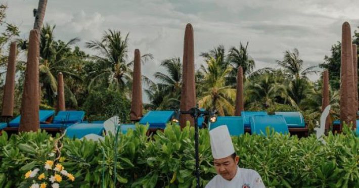 Restaurantul oferă preparate locale și internaționale. Cocktailuri și gustări usoare sunt servite langă piscină sau la barul de pe plajă.
