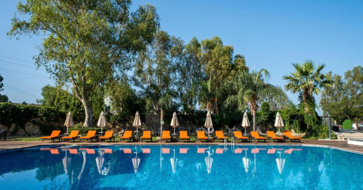 Camerele elegante de la Bodrum Beach Resort sunt decorate cu gust, cu mobilier modern. Toate oferă acces gratuit la internet WiFi, seif, minibar și TV LCD cu canale prin satelit.