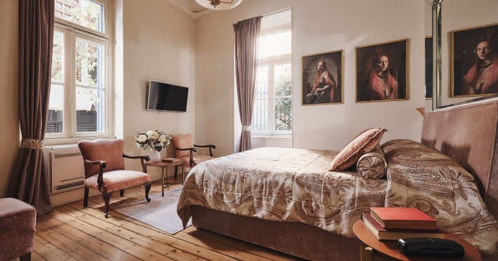 Bohemian Suites Athens: A Tranquil Oasis in the Heart of the CityNestled in a neoclassical building dating back to 1856, Bohemian Suites Athens offers an enchanting blend of high ceilings and eclectic design. Located just 500 meters from Dexameni Square and approximately 600 meters from Kolonaki Square, this serene retreat provides an ideal base for exploring Athens.Surrounded by a spacious and beautifully maintained garden, the property offers a peaceful escape amidst the city’s vibrant energy. Its central location places you within walking distance of iconic attractions such as the Benaki Museum, the Museum of Cycladic Art, Syntagma Square, and Zappion – National Garden, which is just a 10-minute walk away.Each suite is thoughtfully designed for comfort and style. All accommodations feature air conditioning, a flat-screen TV, and a private bathroom with a shower, bathtub, or both, along with a hairdryer. Selected rooms also include balconies, while others boast picturesque garden views.Breakfast is served daily from 08:00 to 10:30 am. During spring and summer, guests can enjoy their meal on-site, while in autumn and winter, an a la carte breakfast is offered in-room for added coziness.The Front Desk operates from 09:00 am to 9:00 pm. For arrivals outside these hours, please contact us in advance to arrange all necessary instructions for a smooth late check-in experience.Bohemian Suites Athens is located 34 km from Eleftherios Venizelos Airport, making it easily accessible for travelers.Discover a unique blend of tranquility, charm, and convenience at Bohemian Suites Athens—your serene oasis in the heart of the city.Bohemian Suites Athens: A Tranquil Oasis in the Heart of the CityNestled in a neoclassical building dating back to 1856, Bohemian Suites Athens offers an enchanting blend of high ceilings and eclectic design. Located just 500 meters from Dexameni Square and approximately 600 meters from Kolonaki Square, this serene retreat provides an ideal base for exploring Athens.Surrounded by a spacious and beautifully maintained garden, the property offers a peaceful escape amidst the city’s vibrant energy. Its central location places you within walking distance of iconic attractions such as the Benaki Museum, the Museum of Cycladic Art, Syntagma Square, and Zappion – National Garden, which is just a 10-minute walk away.Each suite is thoughtfully designed for comfort and style. All accommodations feature air conditioning, a flat-screen TV, and a private bathroom with a shower, bathtub, or both, along with a hairdryer. Selected rooms also include balconies, while others boast picturesque garden views.Breakfast is served daily from 08:00 to 10:30 am. During spring and summer, guests can enjoy their meal on-site, while in autumn and winter, an a la carte breakfast is offered in-room for added coziness.The Front Desk operates from 09:00 am to 9:00 pm. For arrivals outside these hours, please contact us in advance to arrange all necessary instructions for a smooth late check-in experience.Bohemian Suites Athens is located 34 km from Eleftherios Venizelos Airport, making it easily accessible for travelers.Discover a unique blend of tranquility, charm, and convenience at Bohemian Suites Athens—your serene oasis in the heart of the city.
