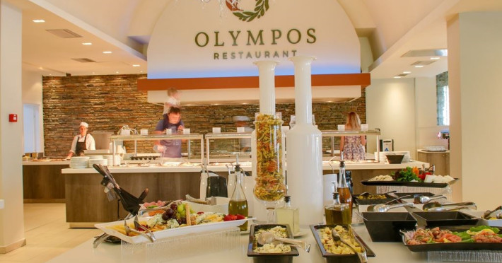 La Bomo Olympus Grand Resort oaspeții au la dispoziție 2 restaurante unde pot savura mâncăruri delicioase, în stil bufet sau à la carte. Preparate din bucătăria asiatică și italiană așteaptă să fie degustate în fiecare zi. Masa poate fi servită atât în interior, cît si în aer liber, pe terasă, în funcție de vreme. Oaspeţii pot avea diverse băuturi răcoritoare sau alcoolice la bar. În cadrul proprietății există și un snack bar care servește băuturi și gustări. Bomo Olympus Grand Resort pune la dispoziție meniuri pentru diete speciale și o zonă de picnic.