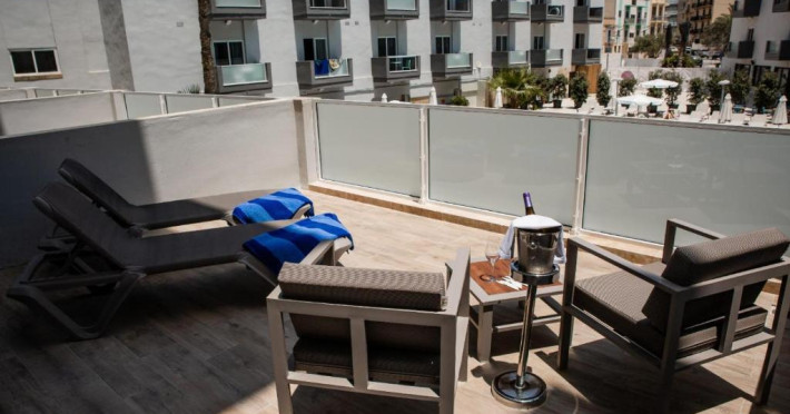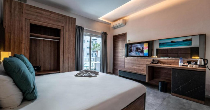 Bora Bora Ibiza Malta Resort - Music Hotel - Adults Only 18 plus are un centru de fitness, grădină, o terasă și un restaurant in Golful St Paul. Printre facilitățile acestei proprietăți se numără o recepție deschisă nonstop și un bancomat, precum și WiFi gratuit in intreaga proprietate. Hotelul are o piscină in aer liber, piscină interioară, club de noapte și room service.