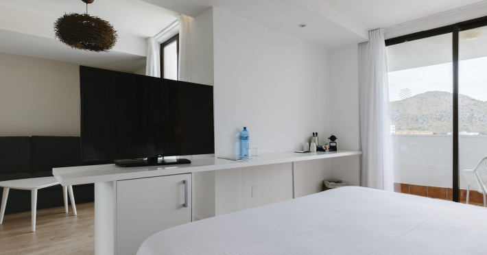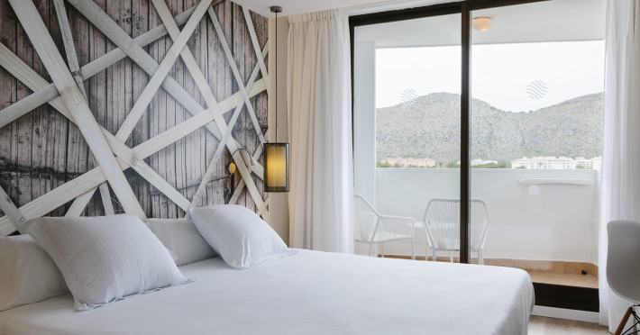 About 800 m from a beach lies the hotel Bordoy Alcudia Bay. The nearest bars and restaurants can be found at a distance of around 100 m. The old town is around 4 km away. The nearest shops you can reach within around 800 m, a supermarket is around 150 m away. Nearby there is a waterpark which offers entertainment in high season. The seasonally air-conditioned, GPS-verified hotel has a 24h reception (check-in is possible around the clock), a lobby, Wi-Fi, internet access, a lift, a jacuzzi, showers and changing rooms, a first aid kit as well as a TV lounge with satellite TV. In the outdoor area you will find a garden as well as a supervised pool, where sun loungers, sun umbrellas and pool towels are available for free. Furthermore, outside you can find a sun terrace. You can store your valuables in the safe, and your luggage in the hotel`s storage room. There is also a laundry service available at an additional cost to customers as well as an ironing service. For your comfort there is a concierge service. The energy supply is 220 Volts. If you want to explore the holiday region, you can use the car rental service close to the hotel (extra fee). In addition, the hotel sells tickets for excursions. For guests on their honeymoon, the hotel has special offers such as champagne or a basket of fruit in the room. In your hotel, a lot of focus is placed on sustainability. This includes the hotel`s own recycling bins, the provision of soap and shampoo dispensers, organic food, a central room air-conditioning and environmentally-friendly cleaning. That is why the hotel Bordoy Alcudia Bay was also awarded a sustainability certificate. For water may incur extra charges at the hotel. American Express, Euro/Master Card and Visa are accepted as means of payment. Due to its barrier-free facilities , such as a sliding door in the entrance area, a hotel door that can be opened manually, separate, barrier-free entrances, wheelchair accessible rooms, a wheelchair accessible lift, a handrail in the elevator and wheelchair-accessible bathrooms, the hotel is also suitable for wheelchair users. Catering As catering services the hotel offers all-inclusive and half board. Breakfast is offered continental or from the buffet (extras on request). Enjoy your lunch from the buffet or à la carte with starters, salads and desserts (extras on request). Dinner is also served as a buffet with starters, salads and desserts. Half board includes breakfast and dinner. When booking all-inclusive, one meal in the à la carte restaurant is included. As part of the all-inclusive service, international alcoholic beverages (unlimited) as well as international alcoholic beverages (limited) are available at no extra charge. For the meals, there are a buffet restaurant (Mediterranean, gluten-free and vegetarian dishes) and the cafeteria as well as the pool bar. The drinks menu of the hotel includes water, soft drinks, coffee and tea, beer and wine. Appropriate clothing is required for lunch and dinner. Distances- Discotheque: approximately at 600 m
