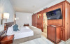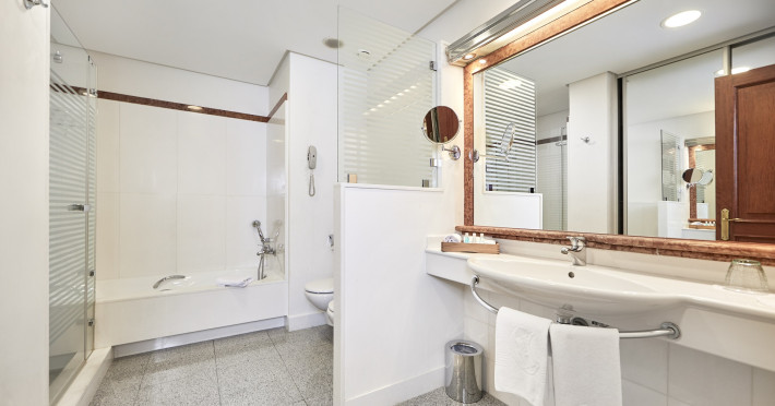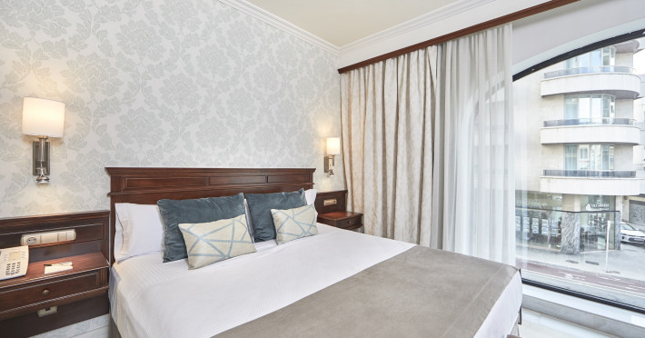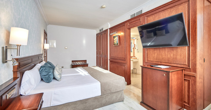 The hotel Hotel Bordoy Continental Palma is located approximately 2,3 km from a beach and about 600 m from the sea. The nearest restaurants and bars can be reached in a few minutes on foot. The old town is around 500 m away. The nearest shops you can reach within around 200 m, a supermarket is around 450 m away. On the beach are beach towels for a fee available. The air-conditioned hotel is equipped with a 24h reception (check-in is possible around the clock), a lobby, Wi-Fi, 3 lifts, a jacuzzi, showers and changing rooms, a first aid kit, parking spaces (for a fee) as well as a TV lounge with satellite TV. You can store your valuables in the safe, and your luggage in the hotel`s storage room. There is also a laundry service available at an additional cost to customers. For your comfort there is a concierge service. If necessary, you can contact the medical centre at any time (for a fee). Guests at the accommodation can get a wake-up call from the hotel personnel. For conventions and other business meetings, the hotel offers a conference area with a total of 20 seats, printer as well as overhead projector. If you want to explore the holiday region, you can use the car rental service close to the hotel. Due to its barrier-free facilities , such as barrier-free entrances, wheelchair accessible rooms and wheelchair-accessible bathrooms, the hotel is also suitable for wheelchair users. Catering As catering services the hotel offers breakfast only. Breakfast is offered continental or from the buffet (extras on request). Lunch and dinner are served à la carte (extras on request and at extra cost). For the meals, there are a bar as well as the cafeteria. Distances- Discotheque: approximately at 500 m
