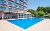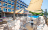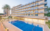 This hotel, situated beside the Playa de Palma lies around 250 m from the beach. Links to the public transport network are to be found close by and can easily be reached on foot. Restaurants and bars are also situated within a 500 m radius and the RIU Centre (home to Mallorcas biggest nightclub) lies around 1 km away. The airport can be reached by car in about 12 minutes. This hotel, renovated in 2002 is spread over 5 floors, with 64 double rooms altogether. The air-conditioned building includes a foyer with a 24-hour reception desk and 2 lifts. Further facilities include a bar, a TV room with satellite TV and an air-conditioned restaurant with a non-smoking area available for use. Guests may also take advantage of the public Internet terminal. Additionally the hotel offers bikes to rent and guests may make use of the bicycle storage facilty. Room service and medical assistance round off the facilities on offer. The comfortable rooms come with an en suite bathroom, a direct dial telephone, satellite/ cable TV, a radio, air conditioning, central heating, a hire safe and a balcony or terrace. In the outdoor complex complete with small garden is a freshwater swimming pool with a childrens pool as well as a sun terrace with sun loungers and parasols and a pool/ snack bar. Furthermore, guests also have the opportunity to use the indoor pool (with glass roof and heated until 30.04). For sports enthusiasts, the hotel offers 3 floodlit, sand tennis courts and minigolf (both available for an extra charge). Beachvolleyball and a variety of water sports are available on the beach. A seasonal entertainment programme with twice weekly dance evenings and bingo provides variation for guests. The nearest golf course is approximately 10 km away. Guests may select their breakfast, midday and evening meals from ample buffets and lunch may be chosen from a menu. Guests have the opportunity to book either a half-board, a full board or an all-inclusive stay.Datorita dinamicitatii domeniului disponibilitatea ofertelor se modifica de la un moment la altul. De aceea ofertele sunt valabile in limita locurilor disponibile. Agentia nu este responsabila pentru eventualele neconcordante care pot aparea intre informatiile privind tarifele si alte detalii din site si informatiile primite in agentie. In aceste cazuri vor avea prioritate, intotdeauna, informatiile primite in agentie.