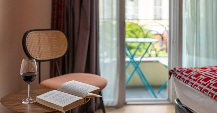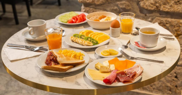 Micul dejun, care include băuturi calde și reci, produse de patiserie și opțiuni sărate, poate fi servit in sala de mic dejun in stil provensal sau pe terasă. Seara, lounge barul sau terasa oferă un loc frumos pentru a vă relaxa și a incerca una dintre băuturile oferite. La cațiva pași se găsesc restaurante și baruri.