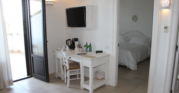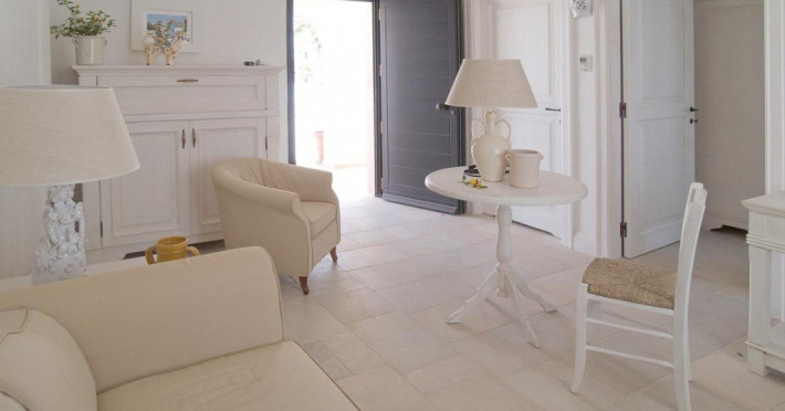 Facilitati camere: 48 de camere din care 27 de suite cu vedere la mare sau gradina, decorate intr-un stil rustic extrem de rafinat in tonuri de alb si crem, podele de piatra, aer conditionat, wifi, TV ecran plat