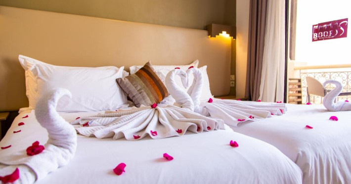 Această proprietate este la 2 minute pe jos față de plajă. Borjs Hotel Suites & Spa se află in Agadir, la 2,1 km de Medina Polizzi și la 2,3 km de Souk El Had, si oferă unităti de cazare cu grădină și WiFi gratuit. Proprietatea este la aproximativ 2,3 km de Muzeul Patrimoniului Berberilor, la 2,7 km de La Medina d'Agadir și la 3,9 km de portul de agrement din Agadir. Hotelul are terasă și vedere la mare, iar oaspeții pot lua masa la restaurant si pot savura băuturi la bar.