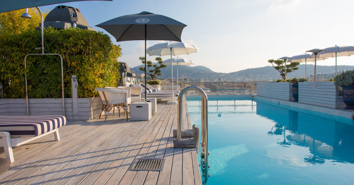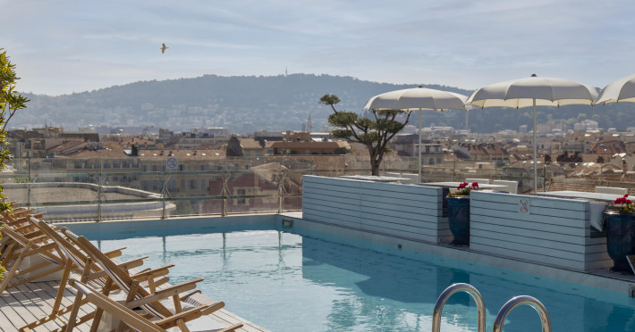 The hotel Hotel Boscolo Nice is located approximately 400 m from the private and public sandy/pebble/rocky beach. The nearest bars and restaurants are located directly next to the building. The old town is around 300 m away. You can find a range of shops and a supermarket directly on your doorstep. There is a shuttle between the hotel and the airport (for a fee). Nearby there is a cinema which offers entertainment in high season. The beach is Pets are allowed here. The seasonally air-conditioned hotel has a 24h reception (check-in is possible around the clock), a lobby bar, Wi-Fi, internet access, a lift, a first aid kit, parking spaces (limited) as well as a TV lounge with satellite TV. In the outdoor area you will find a seasonally heated pool with clubhouse, where pool towels are available for free. Furthermore, you can relax outdoors on a roof terrace. Inside the hotel you can use a heated indoor pool. You can store your valuables in the safe, and your luggage in the hotel`s storage room. In addition, the hotel Hotel Boscolo Nice is video-monitored 24h a day. For very young guests, kid`s chairs can be provided. For the smallest children prams can be rented in the hotel. There is also a laundry service available at an additional cost to customers. Ironing equipment can be borrowed at the hotel. For your comfort, in addition to the concierge service the hotel page will ensure you are looked after. The energy supply is 220, 230 and 240 Volts. For conventions and other business meetings, the hotel offers a business centre as well as a (auditorium-style) conference area with lectern, printer, scanner, overhead projector, internet access as well as a catering service. If you want to explore the holiday region, you can use the car and motorbike rental service close to the hotel (extra fee). In addition, the hotel sells tickets for excursions. Pets are allowed on the hotel (only dogs and cats, on request). For guests on their honeymoon, the hotel has special offers such as a romantically-decorated room, personalised rooms/articles, rooms with a particularly romantic location and view, romantic dishes in the restaurant, champagne, sparkling wine, a present, a basket of fruit or flowers in the room. In your hotel, a lot of focus is placed on sustainability. This includes the provision of soap, shampoo and lotion dispensers and a central room air-conditioning. For water, electricity, gas and a club card may incur extra charges at the hotel. The hotel requires that all guests pay a deposit upon arrival. American Express, Euro/Master Card, JCB and Visa are accepted as means of payment. Due to its barrier-free facilities , such as an automatic hotel door, a hotel door that can be opened manually, separate, barrier-free entrances, wheelchair accessible rooms, a wheelchair accessible lift, a handrail in the elevator and wheelchair-accessible bathrooms, the hotel is also suitable for wheelchair users. Catering Breakfast is offered American, continental, from the buffet or à la carte. Enjoy your lunch as a set meal. Dinner is also served à la carte. For the meals, there are a restaurant with terrace (Italian and gluten-free dishes) and a bar as well as the pool bar. Distances