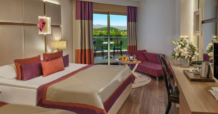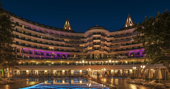 Hotelul este situat pe malul mării, la 90 km de aeroportul din Antalya.